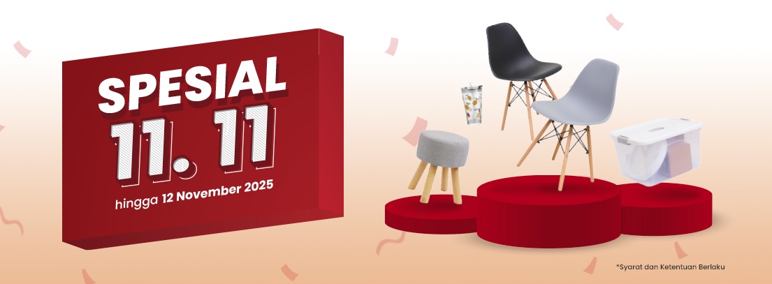 Beli 1 Gratis 1* isi rumah pilihan dari aneka kursi, bangku, tempat penyimpanan, alat dapur dan perabot lainnya.