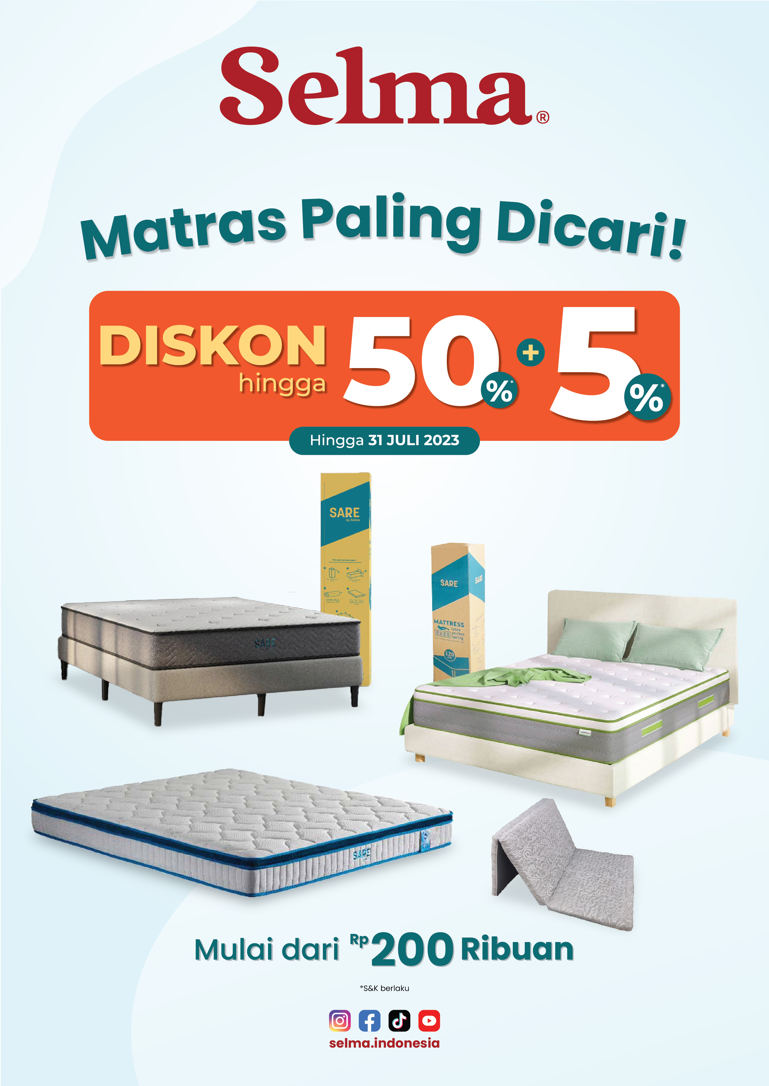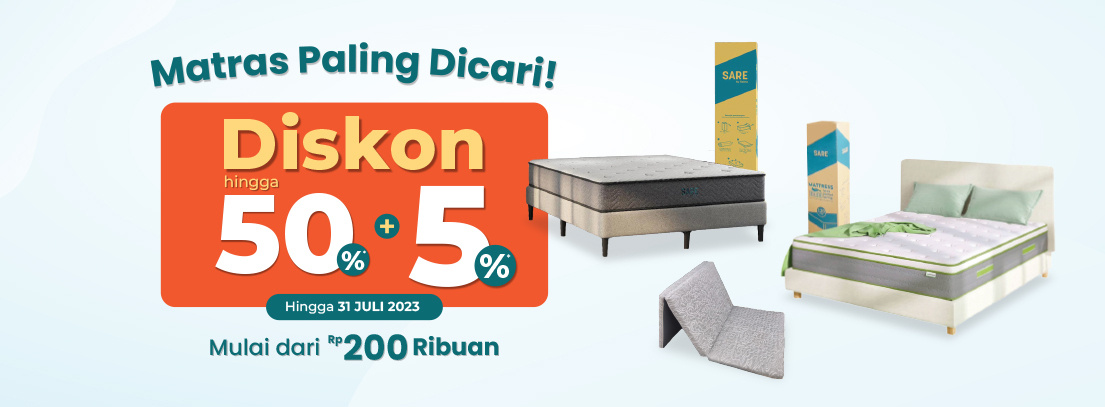 Dapatkan diskon hingga 50% + 5% untuk setiap pembelian Matrass di store Selma