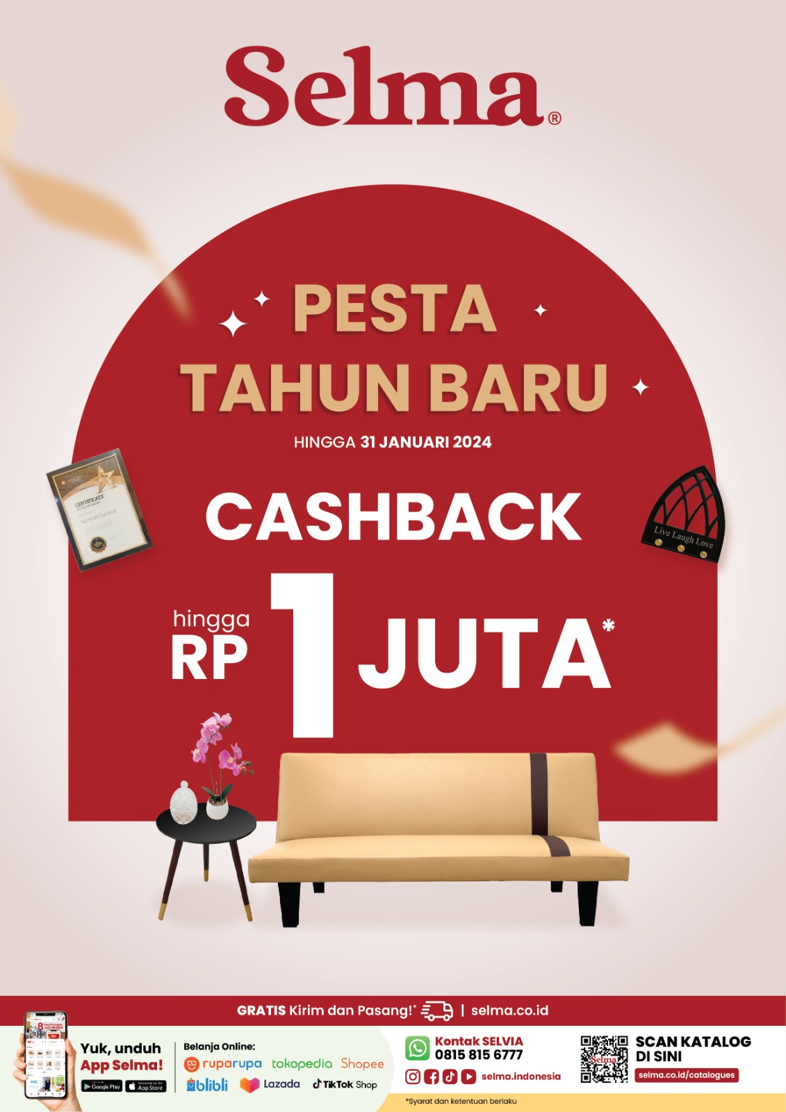 Tetap untung karena ada cashback hingga Rp 1 Juta* berlaku untuk semua produk SELMA.