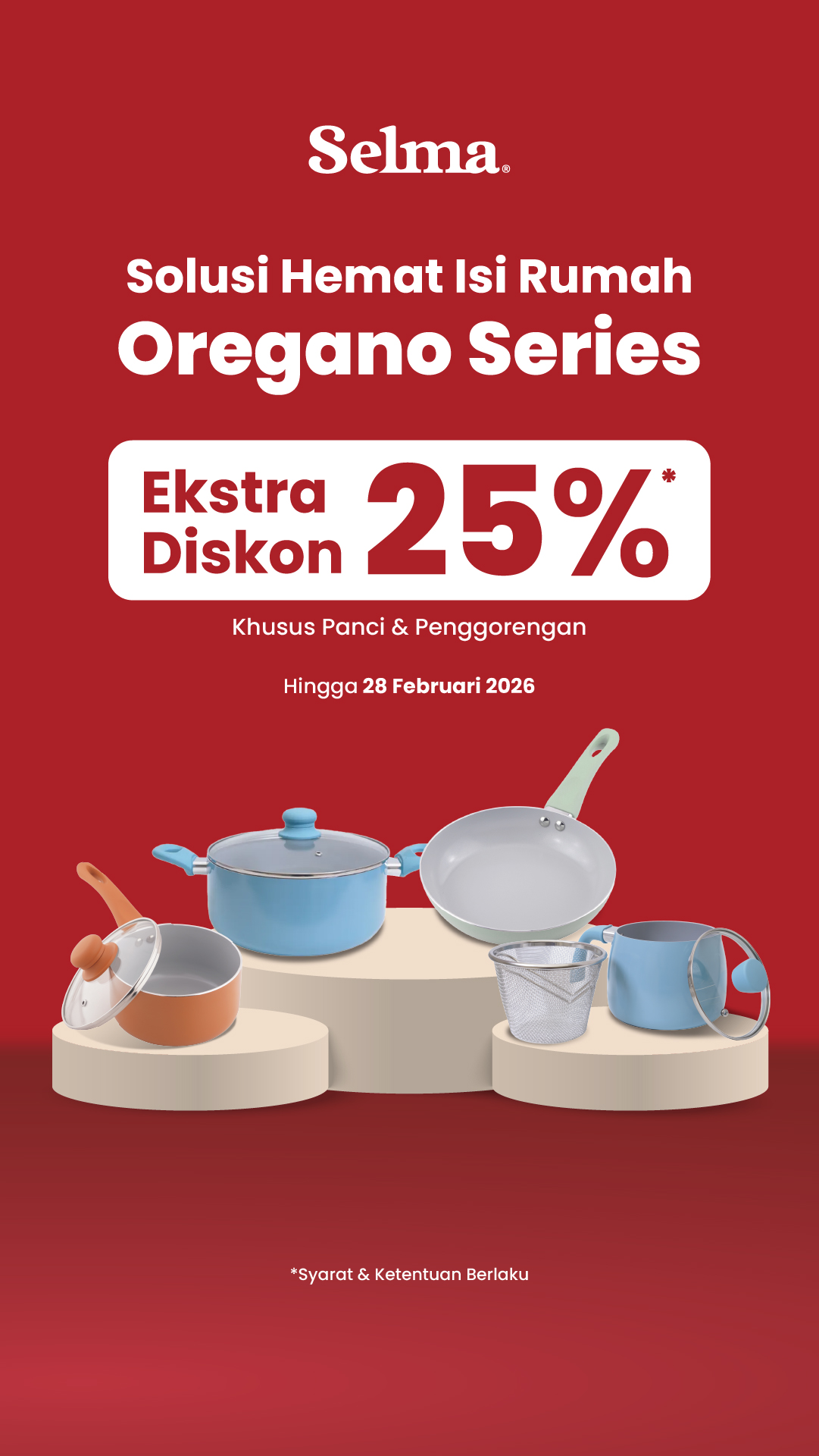 Lengkapi perlengkapan masak di rumah dengan koleksi panci dan penggorengan Oregano Series dari Selma, sekarang dengan ekstra diskon 25% dengan minimal belanja Rp 500,000.