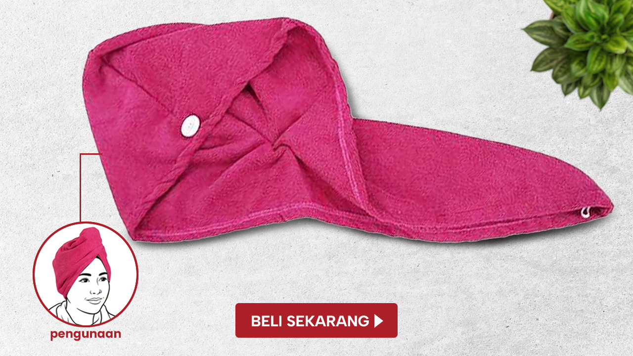 Nggak hanya fungsional, handuk rambut ini juga dilengkapi kancing dan karet pengait yang bikin pemakaiannya jadi super praktis dan nggak gampang lepas. Cocok banget buat kamu yang butuh solusi simpel dan cepat setelah kehujanan. Plus, handuk ini juga mudah dicuci dan dirawat, jadi selalu siap dipakai kapanpun kamu butuh. Musim hujan nggak bakal jadi penghalang lagi deh buat tampil fresh.