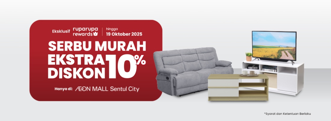 Nikmati SERBU MURAH ekstra diskon hingga 10% untuk berbagai pilihan furniture hits mulai dari sofa, tempat tidur, springbed, meja tamu, rak TV, hingga lemari pakaian dan kabinet terbaru.