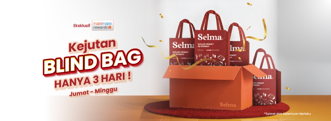 Mulai belanja Rp 2.000.000, kamu langsung bisa ambil Blind Bag SELMA—mulai dari barang kece sampai kejutan lucu yang bikin happy.