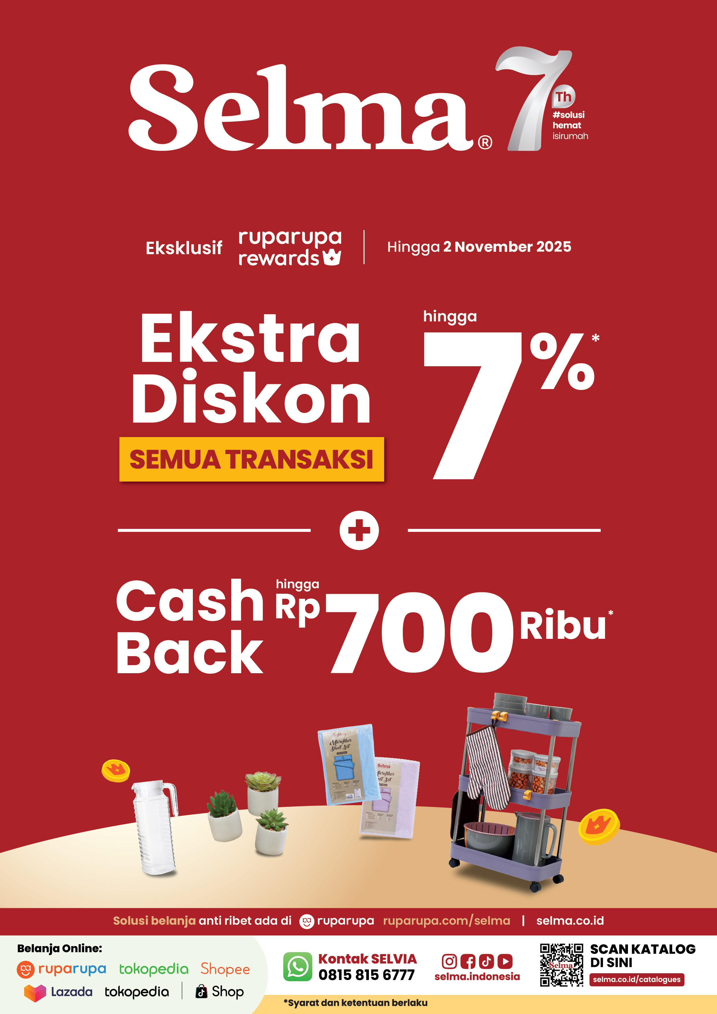 Nikmati Ekstra Diskon hingga 7%* untuk semua transaksimu di SELMA mulai Rabu, 22 Oktober 2025.