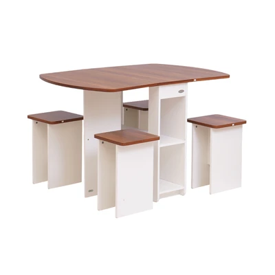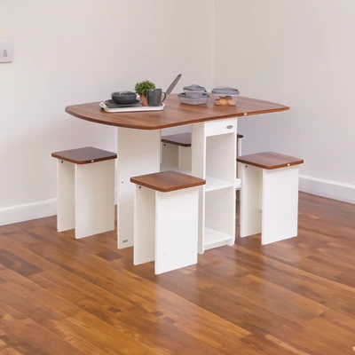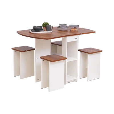 Selma Padma Set Meja Makan Lipat 4 Bangku - Putih/cokelat Walnut