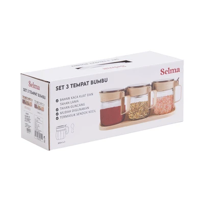 Gunakan Lany set tempat bumbu dapur persembahan dari Selma yang ideal untuk menyimpan garam, merica, atau bumbu bubuk lainnya. Terbuat dari material kualitas food-grade yang aman untuk digunakan sehari-hari. Set ini sudah dilengkapi dengan tatakan stoples, sendok kecil, dan tutup untuk menjaga kualitas bumbu di dalamnya.